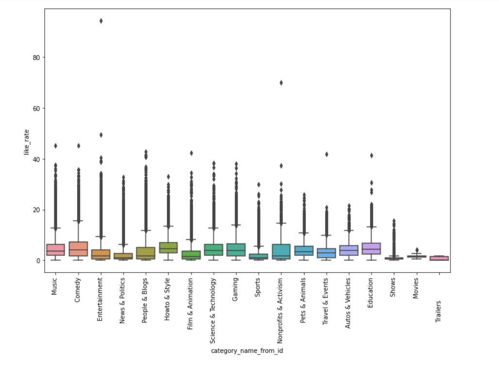- Finding out highest Likes and Views in each category of Youtube Videos